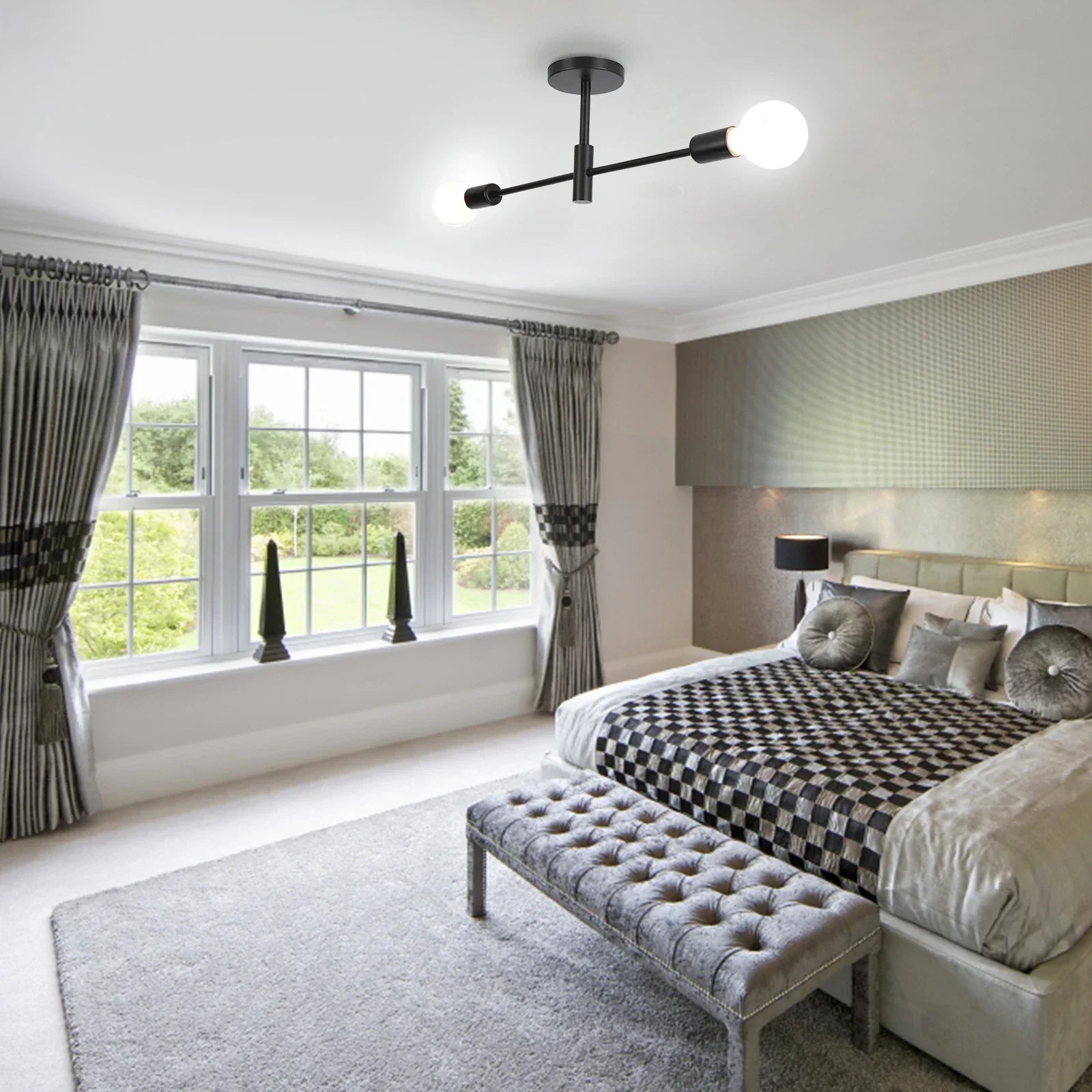 Lustră LED modern cu soclu E27, ideal pentru iluminarea dormitorului, livingului sau dressingului. Acest corp de iluminat minimalist în stil nordic combină designul funcțional cu estetica contemporană, oferind o lumină confortabilă și eficientă.
