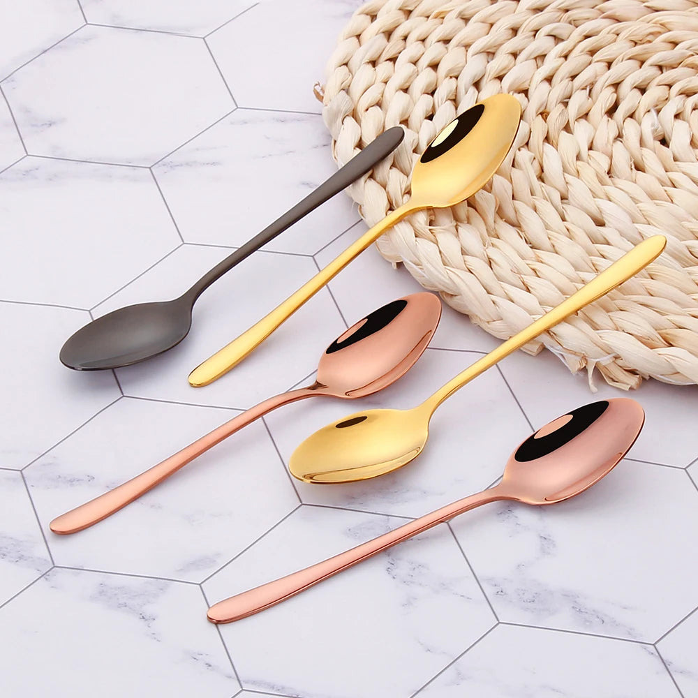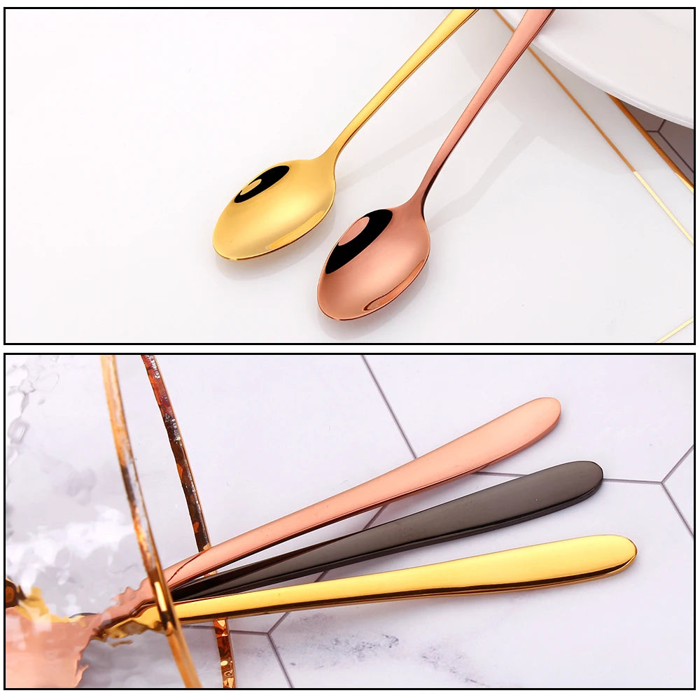 Lingurițe Aurii din Oțel Inoxidabil – ideale pentru Ceai, Cafea, Înghețată sau Deserturi. Designul miniatural și finisajul lucios le fac ideale pentru prăjituri, servirea deserturilor la petreceri sau pentru utilizare zilnică. Realizate din oțel inoxidabil de înaltă calitate, sunt durabile și rezistente la coroziune, fiind potrivite pentru orice ocazie.