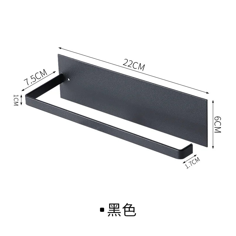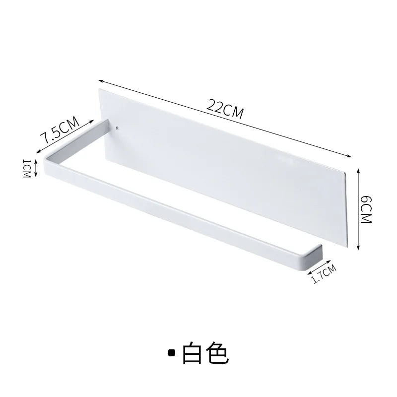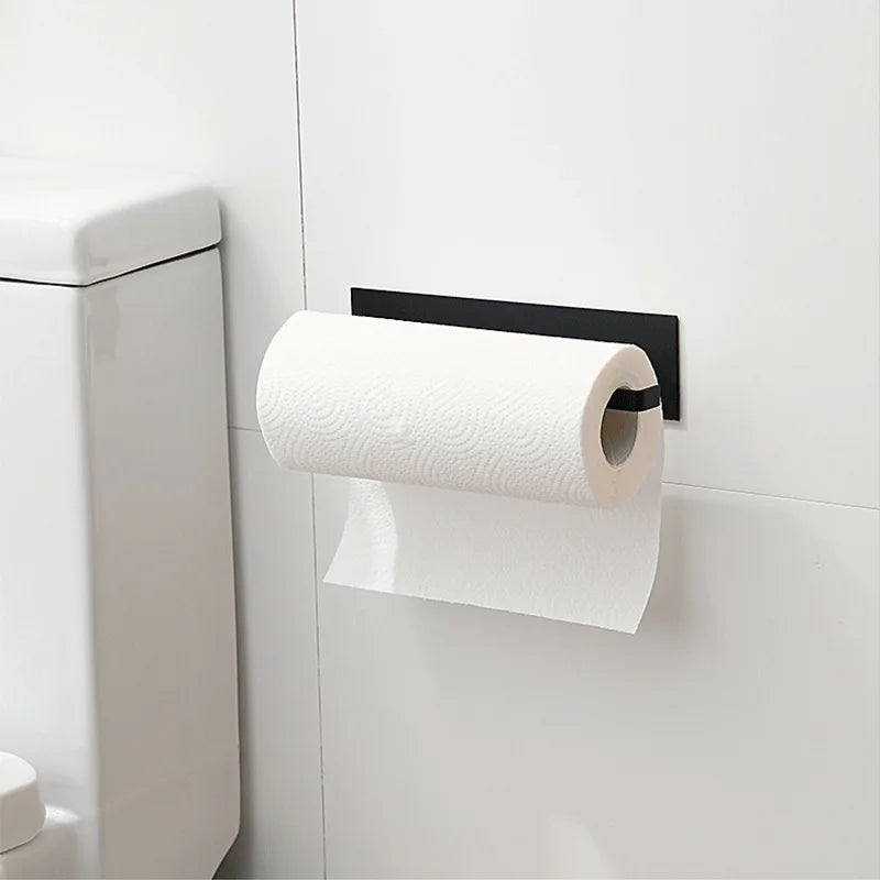 Suport multifuncțional de perete, fără perforare, ideal pentru depozitarea hârtiei de bucătărie, prosoapelor sau foliilor alimentare. Fabricat din materiale rezistente, acest organizator compact ajută la economisirea spațiului și menținerea ordinii în bucătărie sau baie.