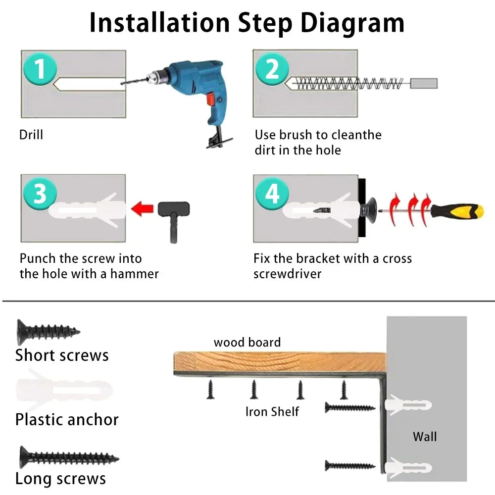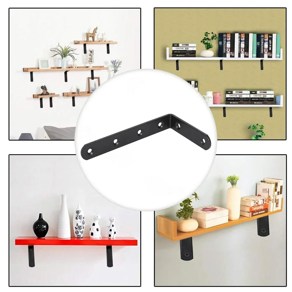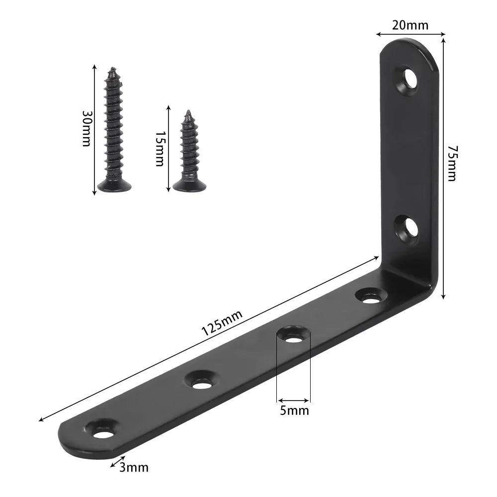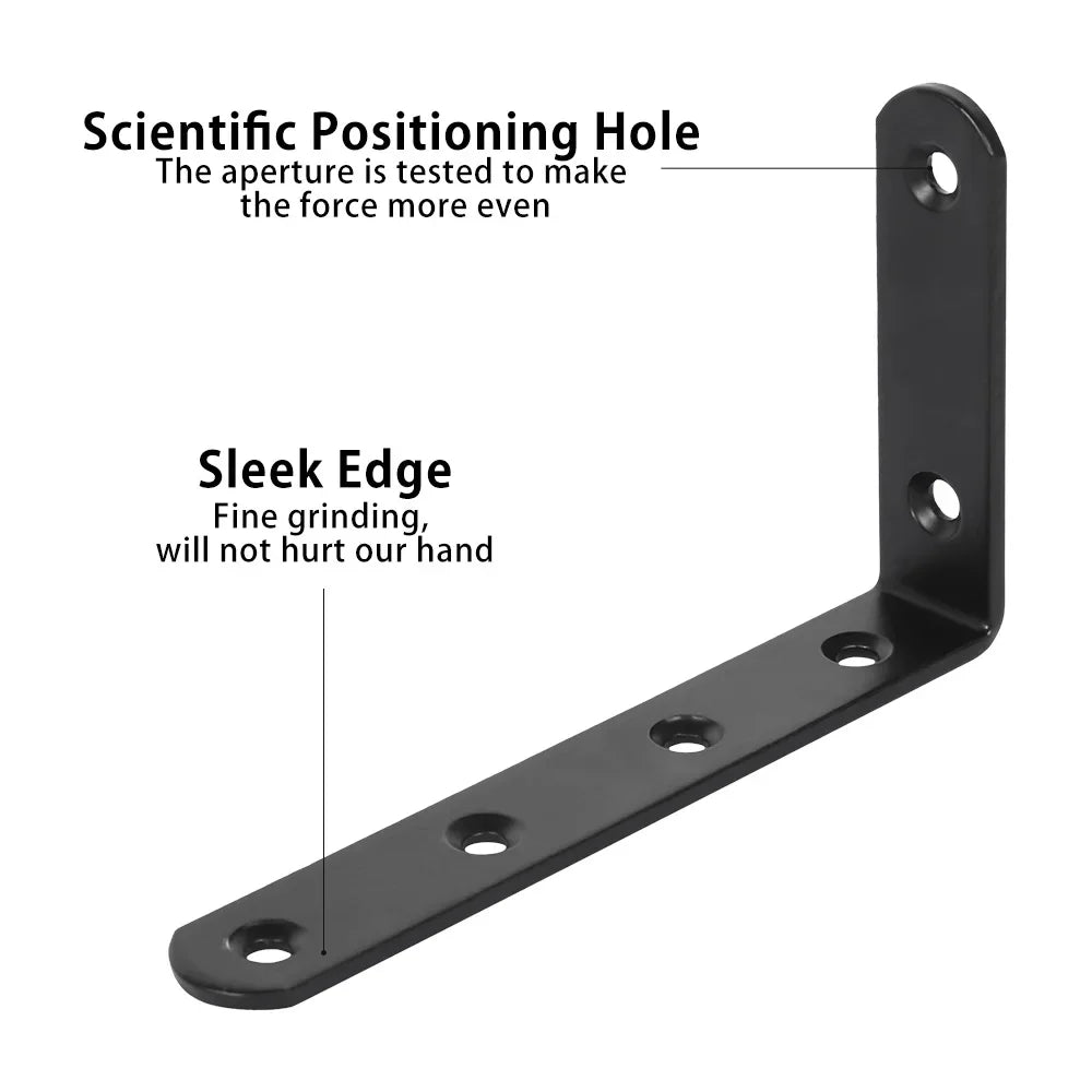 Această consolă în formă de L din fier este ideală pentru montarea rafturilor grele. Designul său robust și finisajele elegante, în culori negru și argintiu, o fac potrivită pentru orice decor.